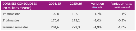 Chiffre d’affaires du 2e trimestre de l’exercice 2025/2026