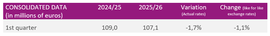 In the 1st quarter of the 2025/2026 financial year, the Damartex group posted sales of €107.1 Mn, almost stable at -1.7% at actual exchange rates compared to the 1st quarter of 2024/2025 (-1.1% at like for like exchanges rates). The Group maintains a rigorous and agile operational management in an unfavourable market marked by a certain wait-and-see attitude.