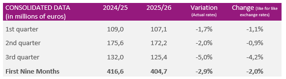 Sales for the first nine months of the 2025/2026 financial year