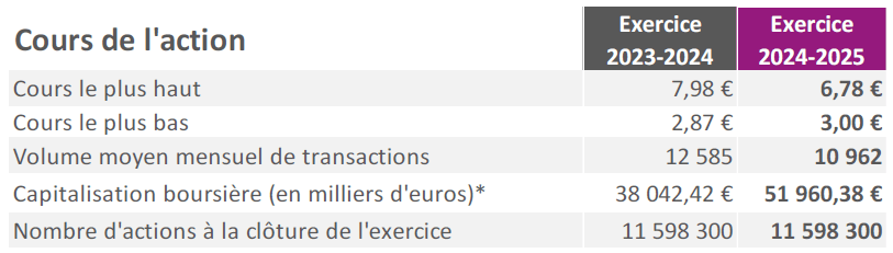 The share capital at 30 June 2024 was 57,991,500 euros divided into 11,598,300 fully paid-up shares with a par value of 5 euros each.